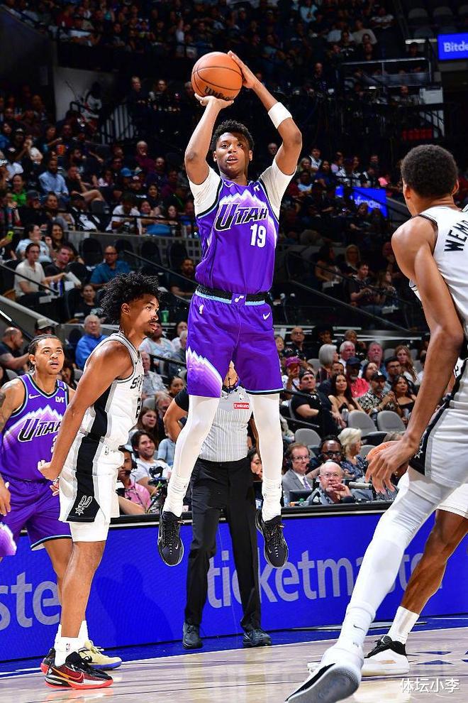 本場比賽兩支球隊打得十分膠著,同時還不斷吹罰犯規(guī),讓比賽節(jié)奏被接連打斷,全場一共出現(xiàn)了高達(dá)79次罰球。這當(dāng)中馬刺一共獲得了42次罰球,命中33球,文班亞馬15分鐘就獲得了10次罰球,殺傷力還是很足的。爵士這邊也有37次罰球,命中率更高,命中了33球。